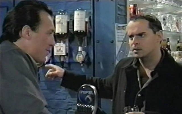 Jackie admires Teresa's stall and Teresa is unhelpful. Jackie offers to take her for a coffee, but Teresa refuses to answer her. Teresa whinges at Robbie and tells him not to serve Steve or Jackie. Robbie agrees and Steve walks in. The police ask Peggy to look at some photos to recognise, or the name Kim Brooks. They ask if Grant's friends might be putting him up. They ask which army regiment and Peggy says the paras and they're all over the world. Lisa arrives and Jamie is pleased to see her, but Peggy tells her to go away as she's not family. Jamie says he told the nurse she's his girlfriend and Peggy says nastily, "If that's wishful thinking, you're not welcome." Frank gets Peggy out of there, and Lisa and Jamie stay. Lisa asks Jamie if he knows anything at all about what they got into and asks about Billy. Jamie says he has been calling Billy ever since and he seems to have disappeared. Troy helps Irene with some boxes and thanks her for doing his ironing and tells her he likes her perfume. Terry notices her perfume and asks why she's got the full face on today. Jeff asks if they have a photocopier and shows them his flier for the DIY business. Steve is buying a paper and says he might have some work. Terry says loudly, "Ask him if you'll need a spade first." Sam chats to Beppe and Steve says hello, and to tell her mother not to worry about the health club. Sam says to Beppe that Steve seems really nice. Beppe says what you see isn't what you get. Barry suggests a theme wedding to Natalie, and Rosa suggests "Gone With the Wind" and Barry says he was thinking more of "Star Wars"! Natalie is horrified and says Princess Leia had two Chelsea buns on her head. Terry is in the Vic with Irene and Troy and says Dot is too old behind the bar and he'd much rather have a dolly bird. Troy says, "Older women are much sexier. They know about life, listen to what you say and have a great sense of humour." Sam arrives with Beppe and Beppe goes to park the car and Peggy says it's because of Beppe that one son is in intensive care and the other missing. Frank says he'd better feed the meter and tells Beppe he believes him - "You probably saved his life, but Peggy will never believe it." Meanwhile Peggy moans to Sam that they would both be still alive if it weren't for Beppe. Peggy says that Sam is just selfish and she might as well not have a daughter - she didn't turn up when Tiffany died and when Peggy had cancer, Sam had a beach party instead! Sam said she tried to get time off and goes and cries to Frank. Frank tells Sam that Peggy didn't mean it. Sam asks Frank his opinion of Beppe and he tries to avoid answering but says he supposes Beppe is a decent chap. Beppe arrives and Frank leaves, and Sam tells him she has to cool it off. Beppe says they did the right thing, and Sam says she wants to be on her own, so he leaves, disappointed. Peggy tells Frank she thinks Beppe set Grant up because he has it in for him. Frank gets another call from the brewery but she refuses to talk without Grant there. Phil wakes up and Peggy asks him if he can remember anything and says, "Grant is missing, what happened in the car, is Grant dead? Why were the police chasing you?" Peggy says she'll ring Kathy and Phil says no, he doesn't want her here. Beppe goes to work, and Steve politely asks about Grant. Beppe tells him to lay off the charm offensive and says he knows exactly what Steve did and what he's capable of. Steve gets closer and says threateningly, "Oh do you? Well, then it would pay you to get on with me wouldn't it?" |