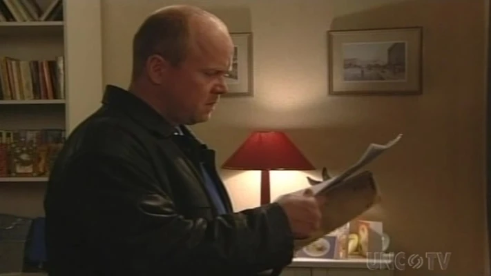 Dan picks up the post and there's a large envelope for Phil. Steve gets one Christmas card in total - from Jeff! Jackie asks him to come to the di Marcos with her. He refuses, saying he's booked into a nice hotel on the coast, with a swimming pool and jacuzzi. As he walks out, the phone rings and it's a message from his solicitor asking him to ring on a very important matter. Dot insists that Barry and Ricky help her carol singers. However, they and Robbie are the only people there, and Dot is awful at singing! Lisa asks Melanie if it's true what they said about Kathy. Melanie refuses to spread gossip, but Lisa says it does explain why Phil was so funny about her last time she was here. Ian tells Kathy he has to see Peggy about the Vic, and Kathy asks why he has to go. When Ian leaves, Kathy asks Melanie not to tell Ian, and Melanie says half the Square knows - he'll find out sooner or later. When Melanie is serving, Pat mentions Kathy and Melanie says she won't set foot in here after yesterday. Pat asks what happened. Gianni asks Beppe what to get Jackie - it has to be a big surprise. Beppe says he has a choice of a weekend away, dinner or a diamond and asks him how much he wants to spend. Beppe has another suggestion and Gianni thinks he'll look stupid. Beppe says that's the charm - she will love him for it. Ian tells Melanie that the hospital told him that Lucy's test results will have to wait until after Christmas. Melanie is surprised. Irene worries about Troy going off to work, and when Rosa chats about Troy flirting with her she grabs Rosa and tells her to keep away from him. Rosa is astonished and Irene apologises and rushes off. Rosa finds her and they talk about it, with Irene in tears. Rosa says she has to finish it. Josie asks Kim why she's telling her she's on a diet but stuffing her face with sweets. Kim says she's fat and Josie says she will stop modelling right away and no more starving herself. Sam asks Phil to come with her to the di Marcos for lunch and he says he might. She tells Peggy that he might be coming and they have to make up some time and it's all Kathy's fault! Jackie tells Beppe she can't find her keys and asks him to help her break in. When they get in, Gianni is half-dressed in a Santa suit! Jackie bursts into laughter. They get into bed and Jackie says he knows how much he means to her. Gianni says she doesn't tell him, so she says she loves him. Frank hears that Ian made a very generous bid for the Vic and he has won the auction. Terry and Rosa are phoned to say they didn't get it. Ian arrives in the Vic and Melanie asks what he's doing here. He tells Frank and Peggy to keep it quiet from Melanie. Frank says they're just waiting on Grant to sign the deeds. Ian asks if it will be a problem. Peggy asks if Kathy has told him about Grant. Ian returns to find Phil at Kathy's. He asks her if it's true. Kathy says it just happened. Ian replies, "You know what people are going to say about you." Phil says it's no-one else's business, and he leaves. Kathy asks why Ian was talking to Peggy, and he says he got the Vic, and Melanie is in for a big surprise for her Christmas present. Phil opens his mail, and finds Grant's half of the Vic and the keys, and it's all signed over to Phil to do what he wants with it. |