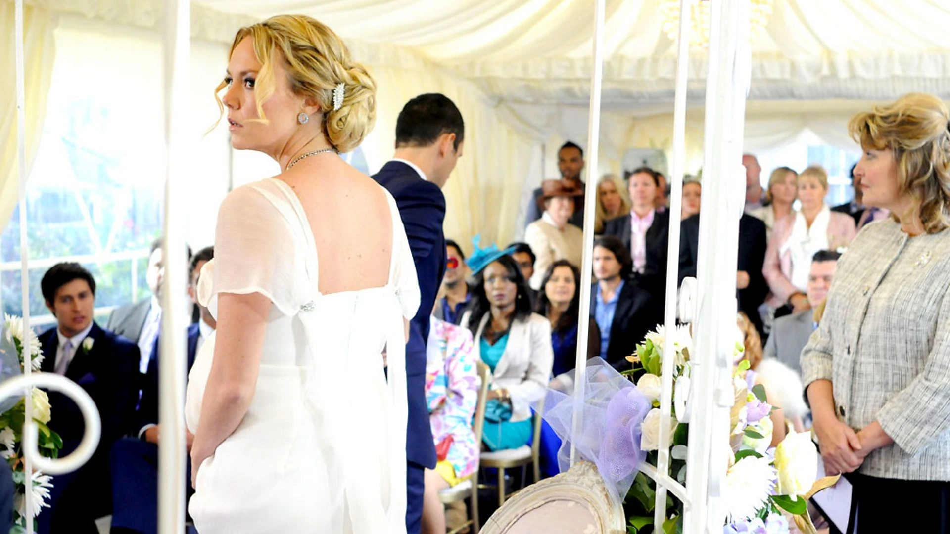 Wedding bells are ringing for Michael and the heavily pregnant Janine as their big day dawns. Derek threatens Lucy again but is stopped by a handsome stranger. Jay is upset when Abi tells him that she is going to Costa Rica.