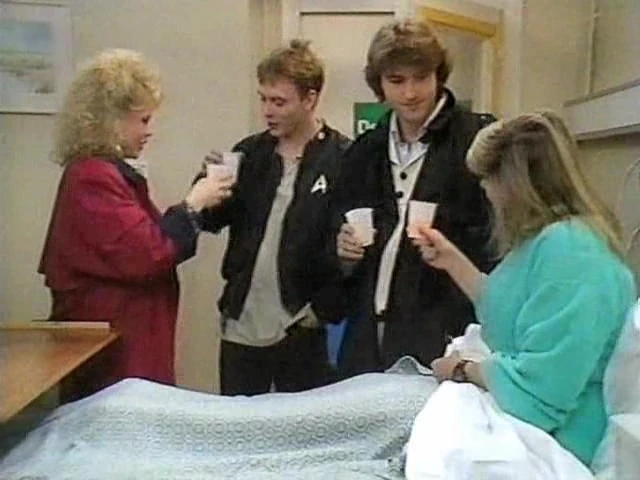 Barbara searches for Kathy to tell her that Cindy is giving birth. She finds Kathy at her flat. Kathy gets dressed and heads to the hospital. Mo complains to Frank about the rubbish at back of the B&B. Cindy successfully gives birth and Ian informs Kathy and Pete. However, as the baby is five weeks early, it is kept in an incubator. Simon gets touchy whenever he hears about Cindy's new-born. Pat notices Simon's behaviour and confronts him over it - he still thinks the baby is his. Frank insists that Sharon and Simon go and visit the baby at the hospital. Simon tries to find an excuse not to go but is unable to. Pat bonds with Barbara over Pete. Pauline returns home from hospital. Cindy sends Ian and Sharon to get her a drink so that she can talk to Simon. She takes him to see their son. Kathy worries when she returns home that the baby may not survive because of how premature it is. Ian and Sharon return and toast to the future together with Cindy and Simon. |