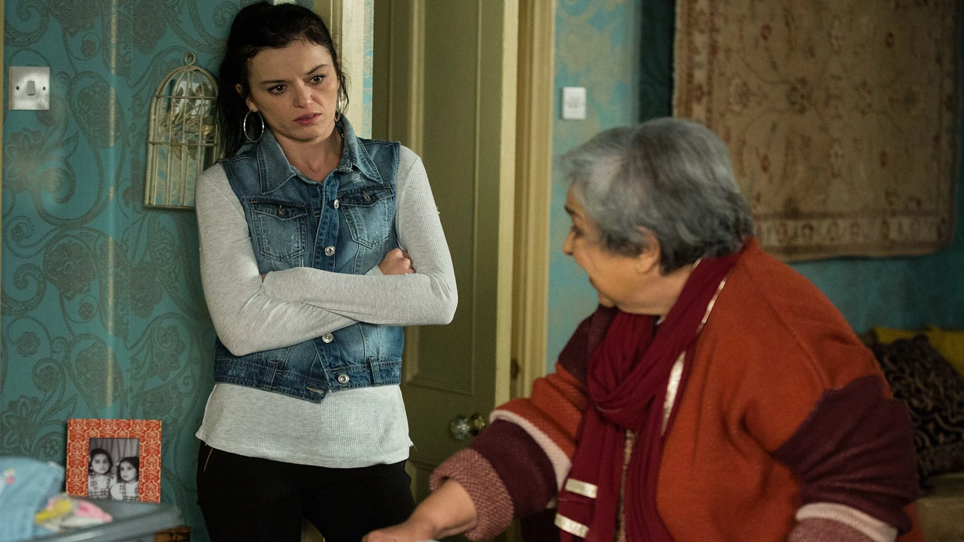 Meanwhile, Stuart manipulates Dot into letting him stay with her after he pays for Robbie to visit his son, Sami, in India. Linda sees Stuart and Tina and Shirley worry what he will do next. Linda is then shocked to see Mick in the Vic's cellar. Alfie tries to get Hayley to come home and even suggests that he and Kat adopt Cherry, though Kat wants Cherry to stay with Hayley. Hayley tells Alfie she always feels pushed out at the Slaters' and Alfie then tells her he has feelings for her. Jean is nearly mugged, which affects her choir rehearsal so she leaves when Morag tries to put her with the background singers. Ian and the rest of the choir then call Morag a bully and turn their backs on her, so she quits and Ian insists he will take over the choir. |